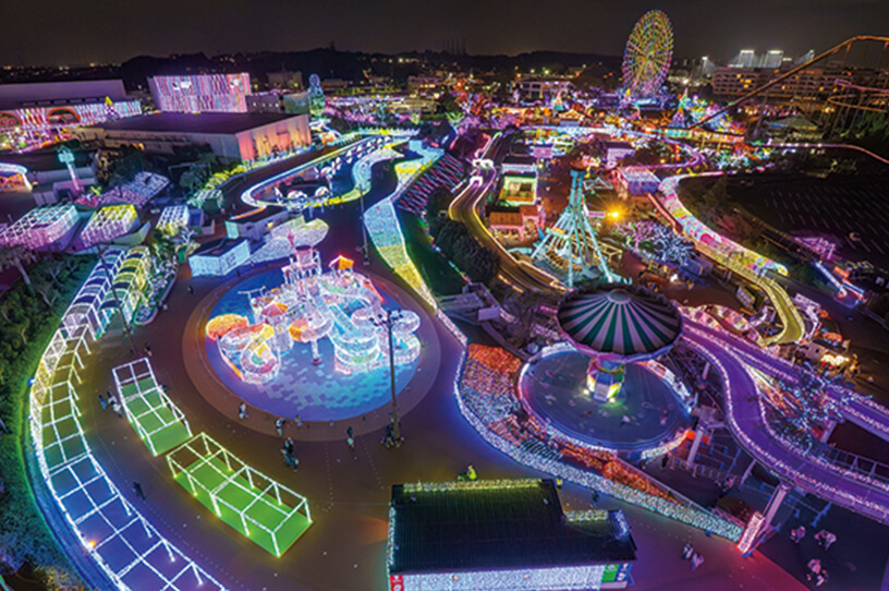 華やかな宝石色のイルミネーションと東京の大夜景を、アトラクションに乗りながら楽しめます。今年はオレンジ系イルミネーションの広場や、新観覧車の両面を異なるライトアップで照らすなどの新企画が登場。迫力満点の「噴水ショー」も必見です。