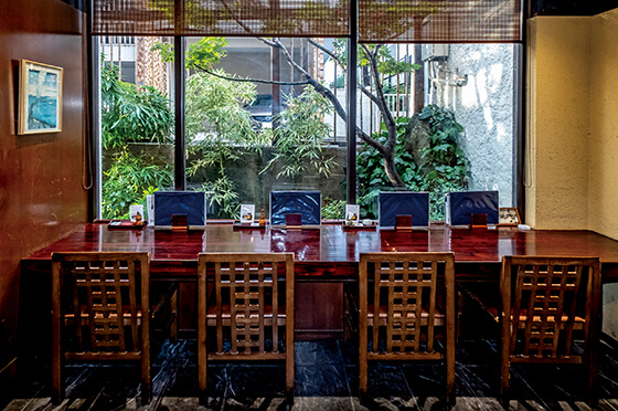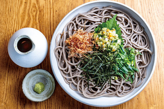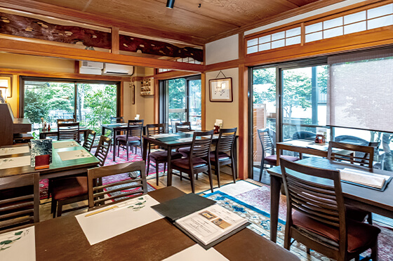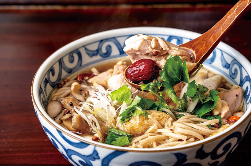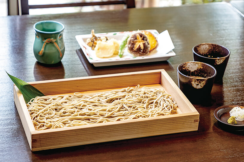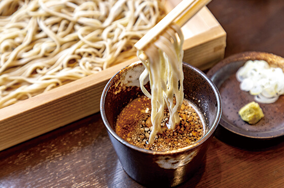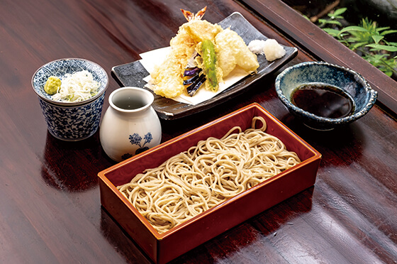窓越しに四季の移ろいを感じながら、おそばがいただけるお店。入口に「本日の打ち手」として名前を掲げられた職人が、石臼挽きのそば粉から毎朝手打ちするそばを提供しています。おすすめは、薬膳かしわ南蛮。地鶏とキノコ4種に、クコの実、ナツメ、生姜、花椒、松の実など体を元気にする食材がふんだんで、体が芯から温まります。また、香り立つ秋の新そばとともにいただく天せいろも人気。丁寧に揚げた天ぷらがせいろの味わいを引き立てます。