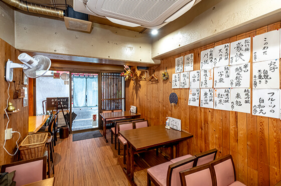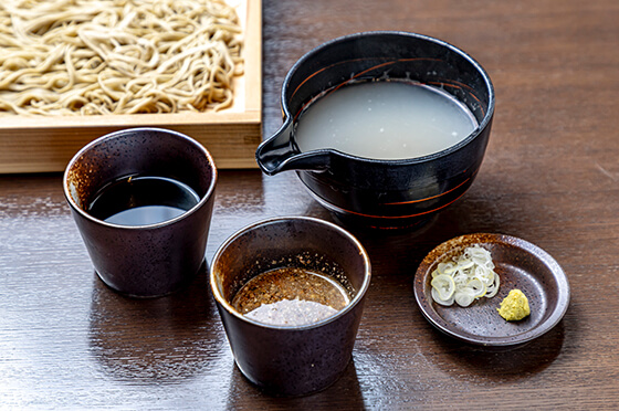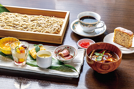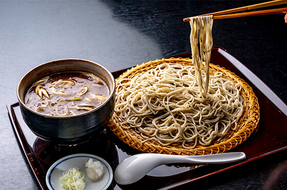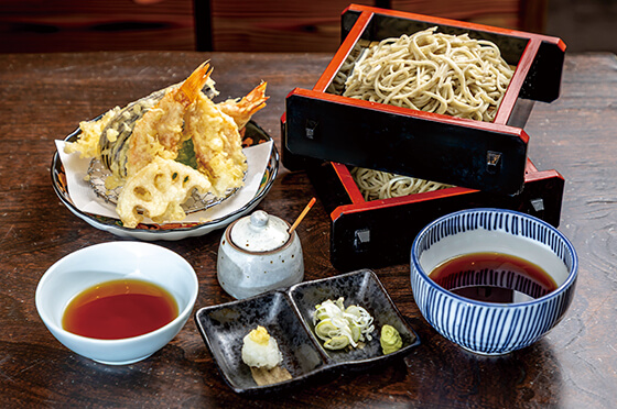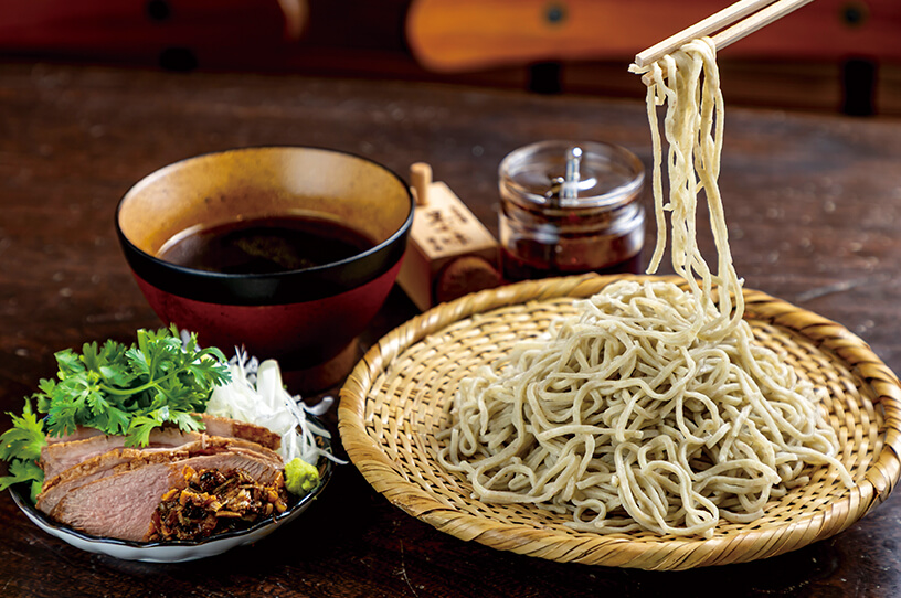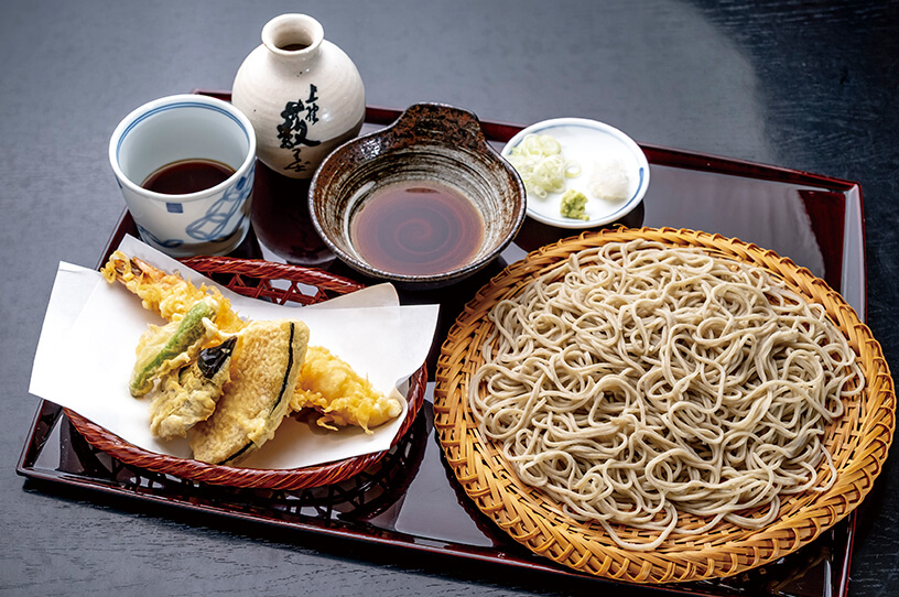 山形のそば文化と郷土の味を多彩に楽しめるお店です。名物の板蕎麦は、山形県産を中心に厳選したそば粉7~8種をブレンドし、太めで野趣あふれる二八そばに仕上げています。特産の芋煮を添えた「芋煮つけ汁蕎麦」は、しっかり味の染みた具材とコシのあるそばが好相性。また、キュウリ、ネギ、ミョウガ入りの山形伝統の「だし」に、ナガイモやニンジン、オクラを加えた特製の「山形だしぶっかけ蕎麦」はさっぱりとした味わいで、季節を問わず人気のメニューです。