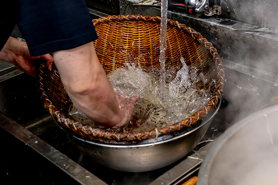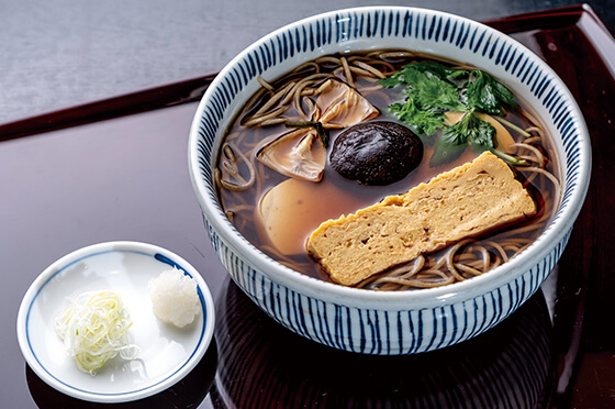江戸前そばの老舗「上野藪そば」で腕を磨いた店主が、生まれ育った海老名の地でのれんを掲げた一軒。なめらかで優しい口当たりの手打ち二八そばに合わせるつゆは、毎日削りたての鰹節でだしを取るのがこだわり。北海道産を中心に、その時季に最良のそば粉で毎朝打たれるそばは、香り高いつゆとの相性を追求しています。また、具材の配置をお多福(おかめ)の面に見立てた江戸時代から続く縁起物のそば「おかめ」に、脈々と続く伝統が感じられます。