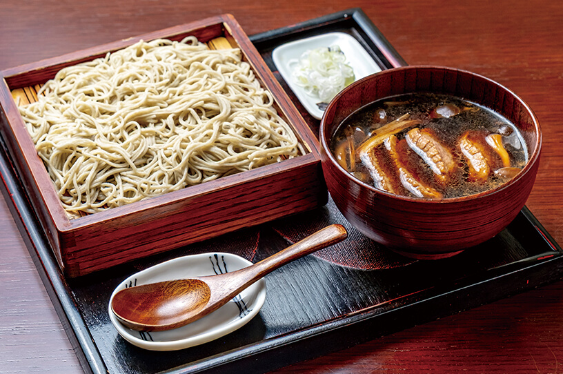 茨城の名店「鬼怒川 竹やぶ」での修業時代からずっと十割そばを探求し続ける、全国からそば好きが訪れるお店です。目利きの店主が選んだ玄ソバを店内で製粉し、コシがありながらも喉越しの良いそばを目指して、毎朝丹念に打ち上げています。国産合鴨肉のローストがたっぷり入った温かいつけ汁でいただく鴨せいろはこの時季おすすめのメニュー。また、通年人気の天ぷらそばは、温かいかけそばと天ぷらが別皿で提供されるので、サクッとした天ぷらの食感を楽しめます。