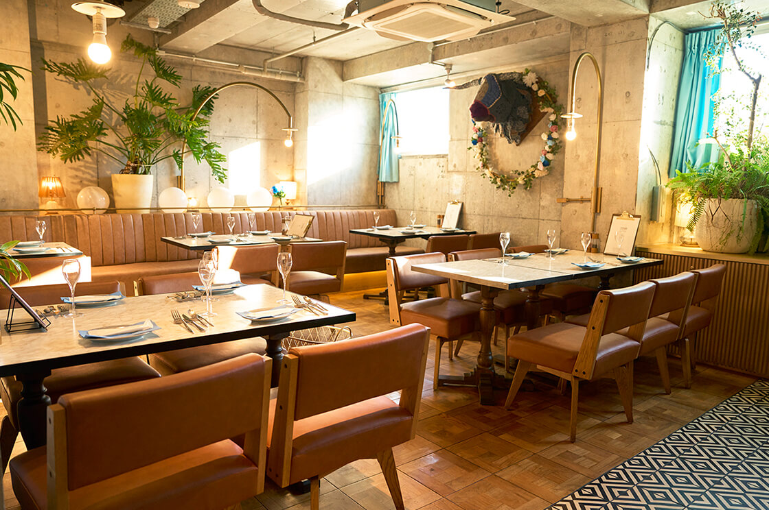 店内は観葉植物などのグリーンを多く取り入れたボタニカルな空間で、落ち着いた雰囲気。肩ひじ張らずに過ごせるのに記念日らしい特別感も伝わる、そんな思いをかなえてくれるお店です。