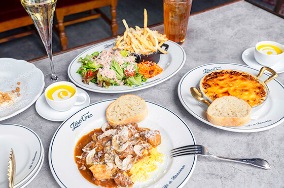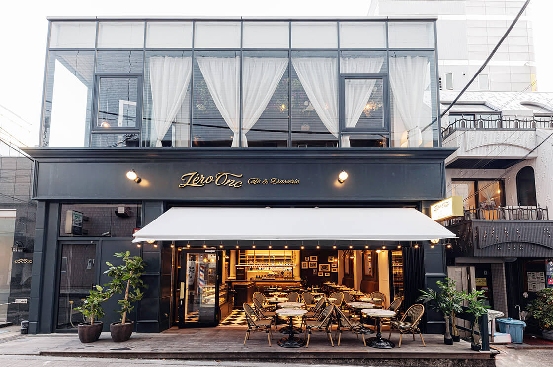 パリのカフェやブラッスリーにいる気分で記念日を祝うなら、町田駅南口から徒歩6分の路地裏に佇む「Zéro One Café & Brasserie」はいかがでしょう。2階建ての店内は天井が高く、ゆっくり過ごせるテーブル席のほか、ペット同伴が可能なテラス席もあります。