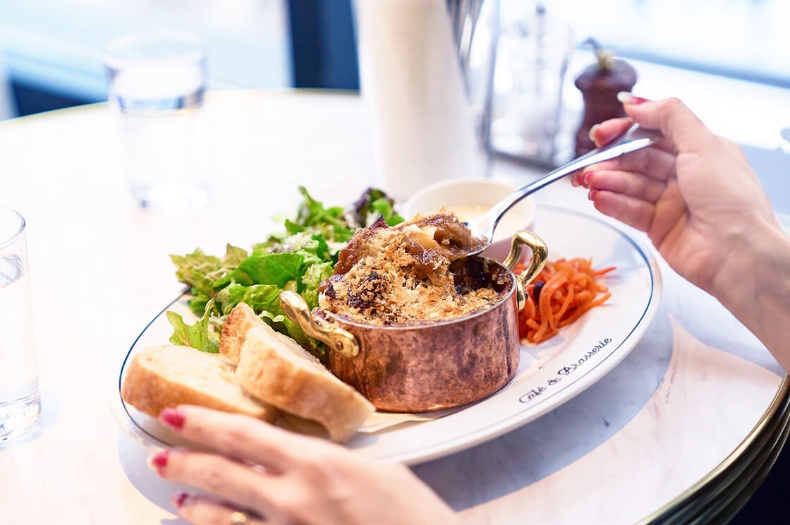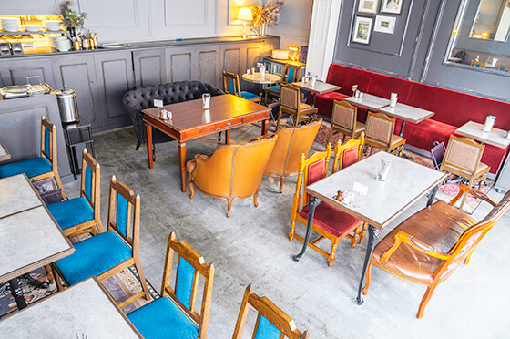 店内は、オーナーが本場パリのブラッスリーを訪れて着想を得たというインテリアでまとめられ、アンティークな雰囲気が漂います。自然光がたっぷりと差し込む2階席なら、パリの街角にいるような気分で、とっておきのお祝いを楽しめそうです。