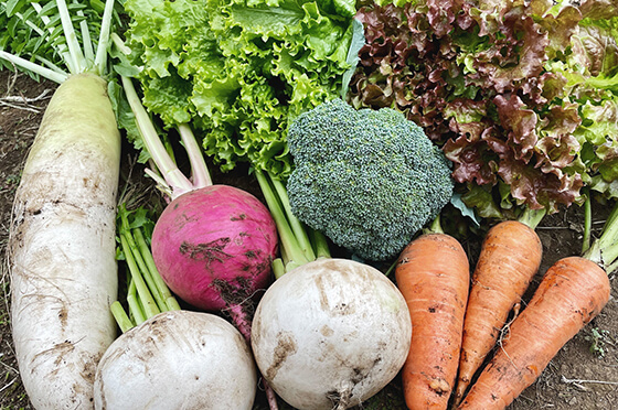 栽培できる野菜は季節ごとに異なり初心者でも育てやすい品目を厳選していて、秋には、ダイコンやハツカダイコン・ラディッシュ・ホウレン草・ハクサイ・ブロッコリー・カリフラワーなどを育てることができます。小さな種や苗から心をこめて育てた野菜は、収穫する喜びもひとしお。優しい女性園主のサポートのもと、甘くておいしい野菜づくりを体験できます。