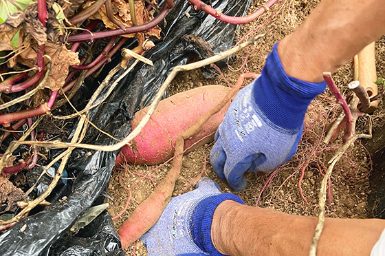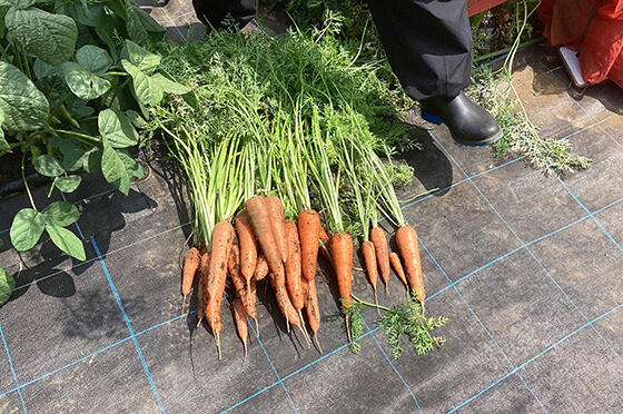 この畑で育てた野菜はなんといっても“甘い”のが特徴。その秘訣は、園主が作るオリジナルの堆肥。代々農業に使われてきた畑の土に、柿の落ち葉や野菜くずを発酵させた堆肥を合わせることで、甘くおいしい野菜が育つのだとか。堆肥や種苗、農具はすべて農園側で用意してくれるため、手ぶらで参加できるのもうれしいポイント。