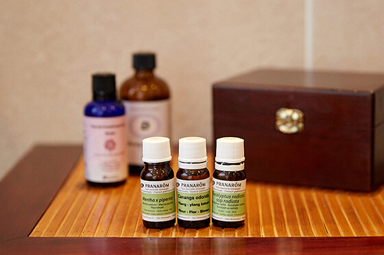「プラナロム(PRANARÔM)」は、医療グレードの精油ブランドで、化学合成物質や農薬を使わないオーガニック農法で育てた植物を使用し、世界中のアロマセラピストから信頼を集める高品質オイルです。体調によって、心地よく感じる香りは変化し、選んだ香りは今の自分に必要な作用をもたらすといわれています。温める、冷やす、リラックスさせるなど、体調に合わせたオリジナルオイルでケアが受けられます。