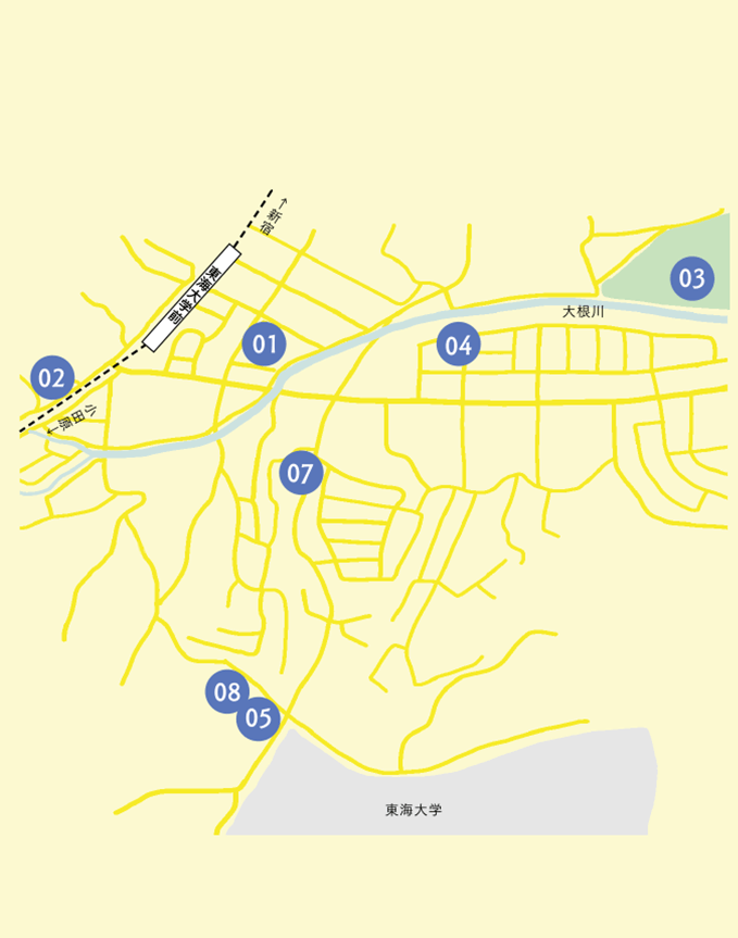 大学のキャンパスが街の中心にあり、多くの学生たちが行き交う東海大学前。学生の街ならではのグルメから、おしゃれなカフェや隠れ家のようなレストラン、緑あふれる公園まで。さまざまな出会いが待っています。