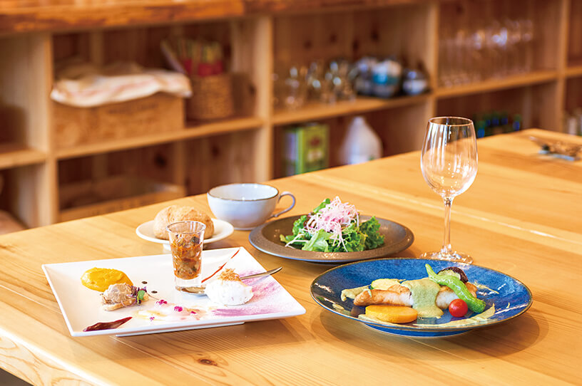 古民家を改装した、オーガニックや旬にこだわる一軒家レストラン。地元食材のほか、産地直送のこだわりの食材を使ったコース料理がおすすめ。秦野産の無垢のテーブルも良い雰囲気。