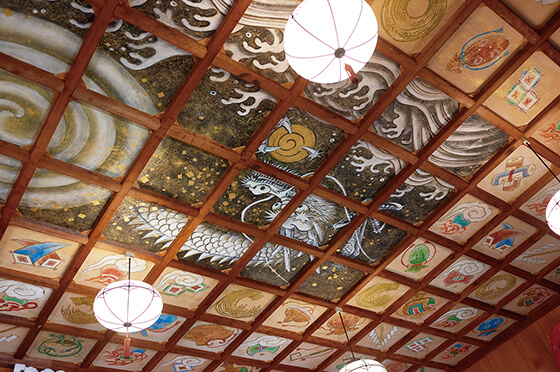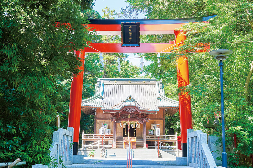 関東三大稲荷の一つで、衣食住・農作物を守護する神として信仰され、境内には清水が湧きます。龍神様を描いた拝殿天井絵は必見。