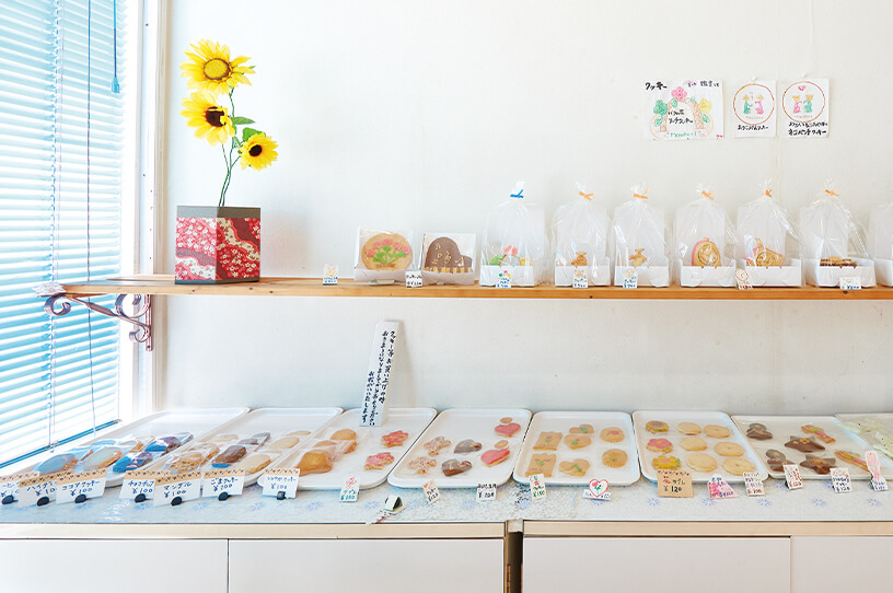 温かい笑顔の店主が迎えてくれる、1976年創業の昔ながらの洋菓子店。SNSで火がついたロングセラーのタヌキのケーキや、立体的なかわいらしい手作りクッキーが店頭に並びます。