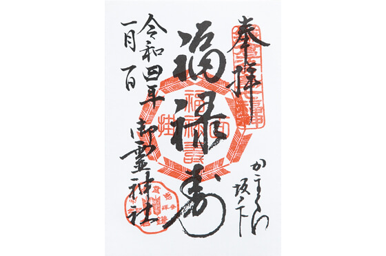 南極星の化身で、頭の長い背の低い仙人。福(幸福)禄(財産)寿(長寿)の三つの徳を司る。御霊神社の面掛行列という奇祭に使われる面の一つとして、境内にある宝蔵庫に安置されている。御朱印/社務所9:00~16:30