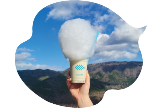 早雲山駅の2階にあるテラスは「いいお湯と景色に浸る」がコンセプト。箱根外輪山を一望しながら楽しめる、標高757mの足湯は開放感抜群です。早雲山の空に浮かぶ雲をイメージした綿菓子付きのオリジナルドリンクも人気です。