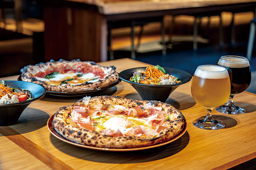 ビール醸造所を併設したスタイリッシュなレストラン。箱根天然水仕込みのクラフトビールに合わせたグリル料理や専用窯で焼き上げるピザが自慢です。