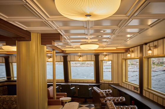 ビクトリーの特別船室は「イギリスの伝統と文化を感じる豪華クルーズ」をコンセプトに、インテリアを刷新。 -