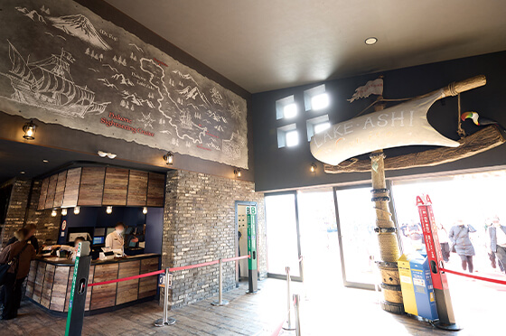 リニューアルした元箱根港構内は、海賊の世界観を表現。 -