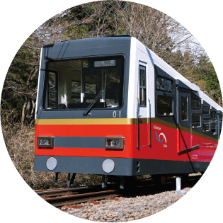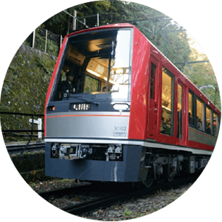 箱根湯本駅~強羅駅間8.9kmを約40分かけ進む箱根登山電車。車窓に広がる景色を楽しみながら、進行方向を切り替えて急勾配をジグザグに走行する「スイッチバック」も必見