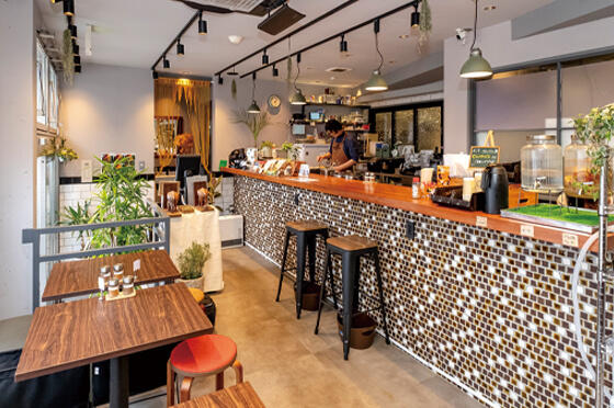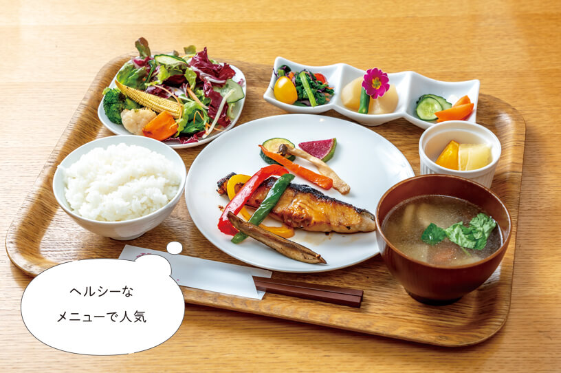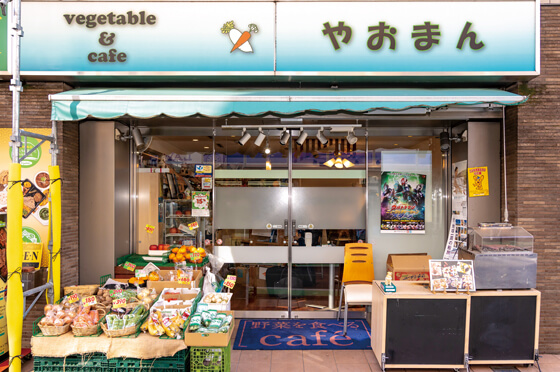 開店から50年以上の青果店「八百萬商店」に併設された、旬の野菜をふんだんに取り入れたランチが評判のお店。ランチはお魚やお肉など4種類から選べます。