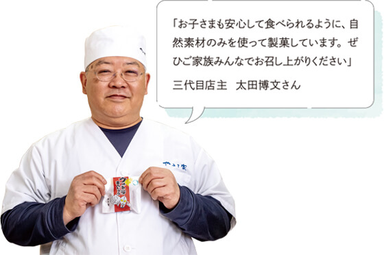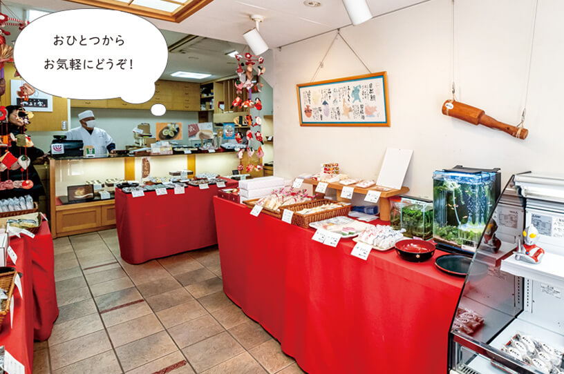 1930(昭和5)年創業の和菓子店。店主は、自ら全国に足を運び、素材を厳選。安全・安心にこだわった季節の生菓子のほか、看板商品「栗大名」や「ウルトラまんじゅう」はお土産に最適です。